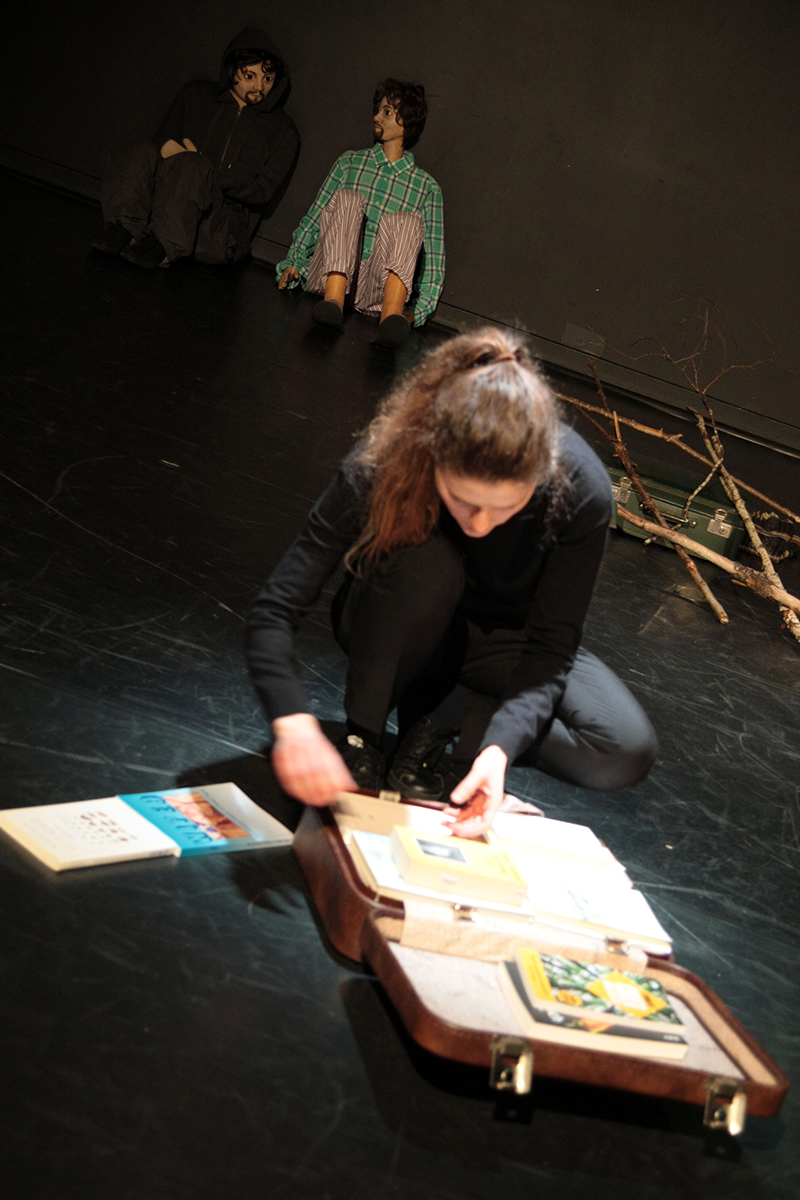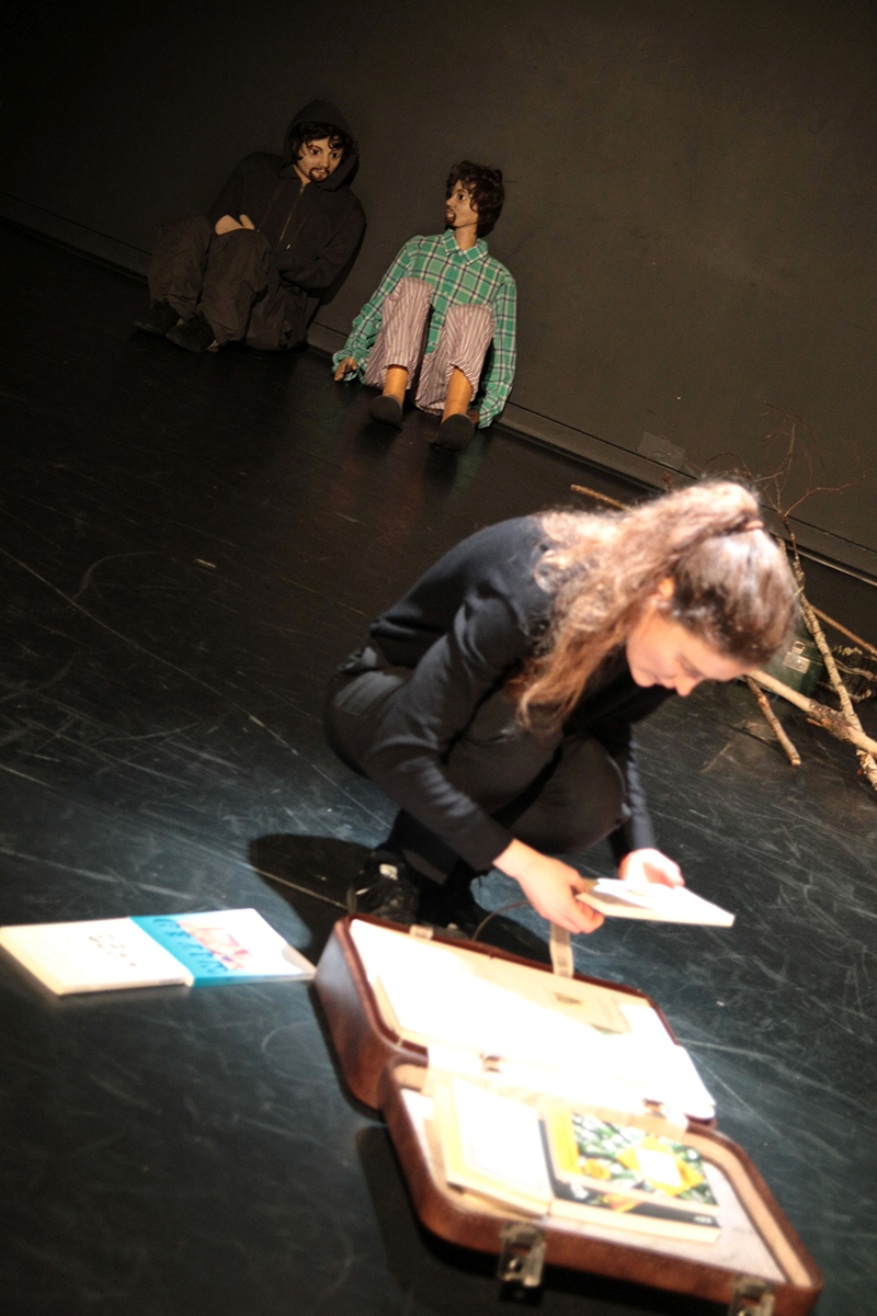 Eleonore Antoine-Snowden, Anne-Laure Lemaire et Gabriel, pantin réaliste à taille humaine, porteur d’un handicap, improvisent, interpellent, échangent, avec les participants et spectateurs. Cette immersion participe à la création à venir en 2020, dans laquelle les étapes de rencontres à Vichy et dans les autres sites de l’université sont autant d’éléments du processus artistique.